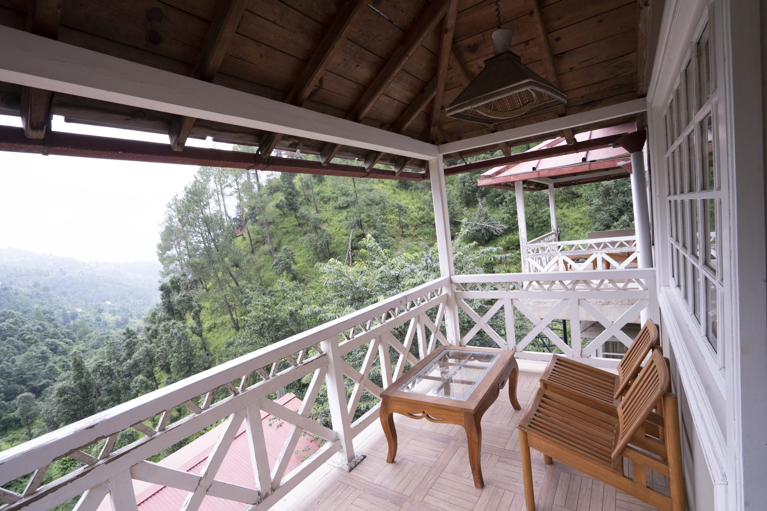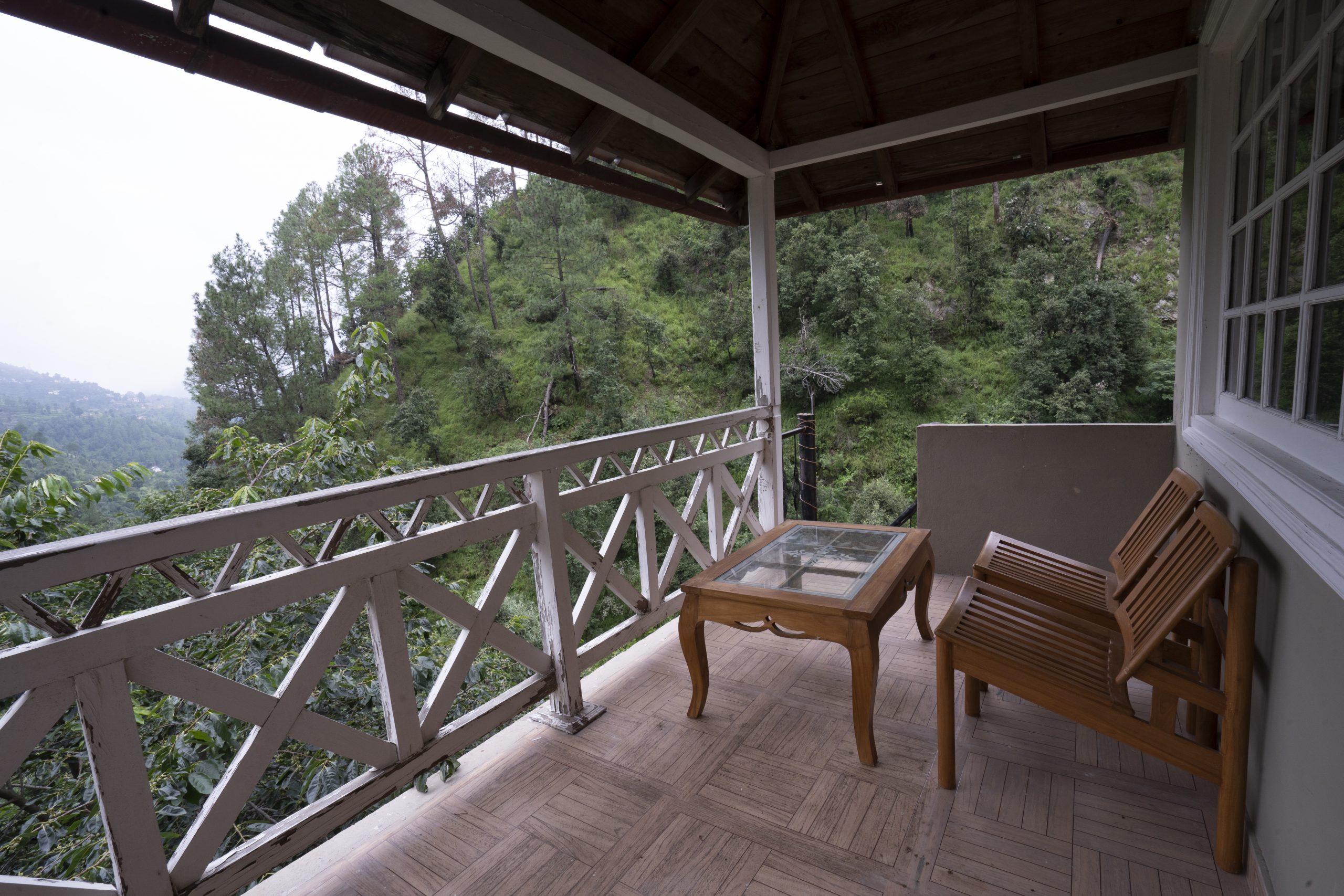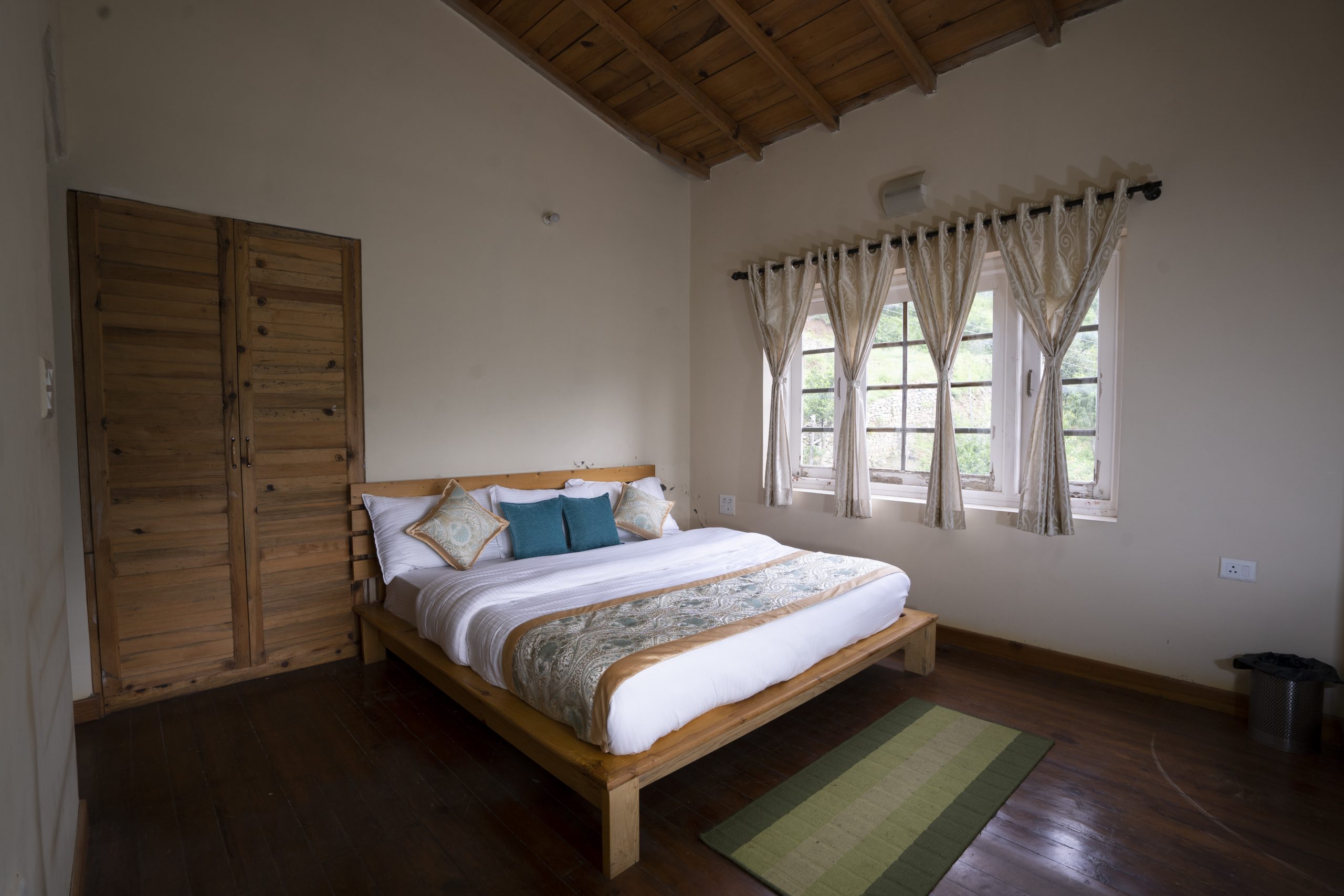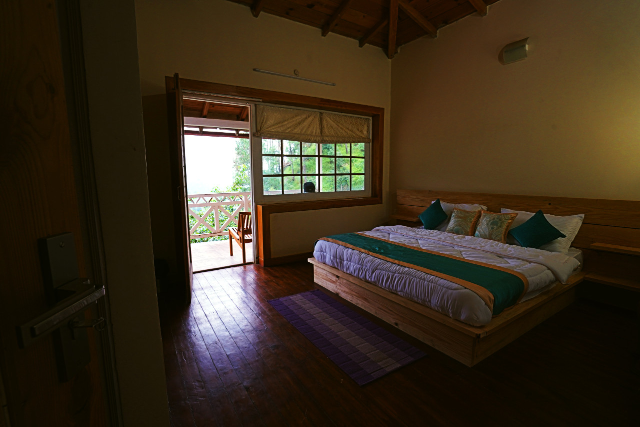 Tastefully decorated, each room is furnished with a king size bed, wooden flooring, dresser, LED TV, well lit bathroom, shower and full length bath tub. From the windows and the small balcony of the room, guests can enjoy uninterrupted panoramas of the dramatic Ramgarh valley cloaked in evergreen cedar trees.